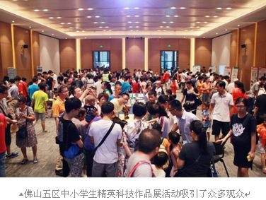 佛山中小学生在科技创新方面屡获殊荣,走在全省前列。佛山电视台、佛山市教育局携手中欧中心,联合策划承办“寻找佛山100名ROBOT创意达人”之佛山五区中小学生精英科技作品展活动。佛山一中、佛山三中、南庄中学、南庄三中、三水西南中学、广东碧桂园学校等学校,以及祖庙街道少年创客工坊选送的一百多件作品参与了本次展览,参展选手还运用其创意作品与现场观众互动,当起小小科普解说员,现场气氛热烈。