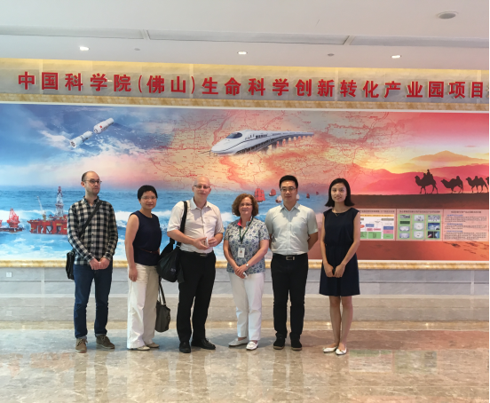 7月12日,法国驻广州总领事馆代表团到访国际创新转化生物产业孵化中心,了解孵化中心的主要业务和发展情况,探讨与法国相关项目的合作机会。到访的法国驻广州总领事馆代表包括商务投资处高级官员何敏仪、科技处官员Christophe Bonté、Christophe Laugé。