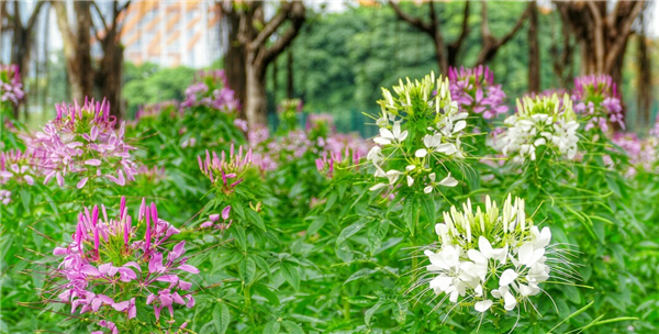 醉蝶花所属白花菜科,醉蝶花属,花瓣轻盈飘逸,盛开时似蝴蝶飞舞,一花多色,兼具蜜腺,常令飞蝶陶醉,故得名醉蝶花。
