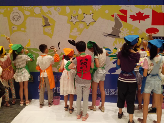 (小朋友正在给“和平常画卷”上颜色)