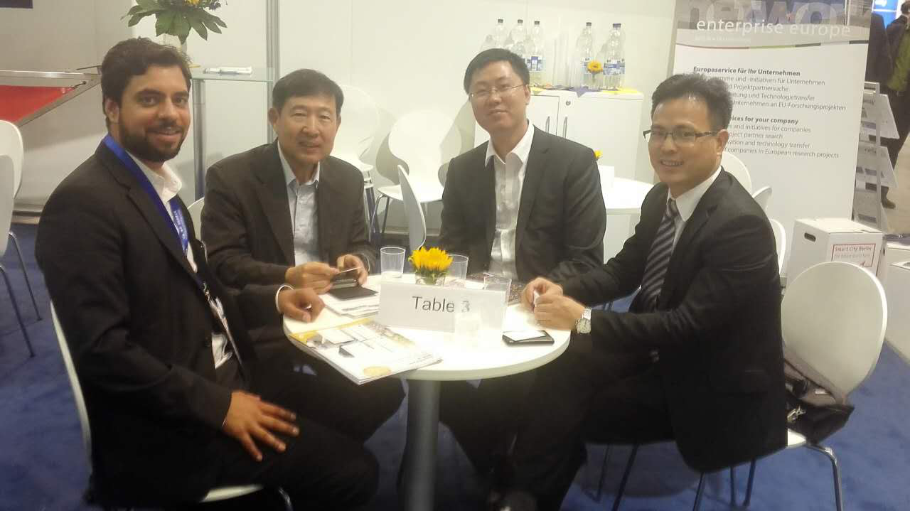 图3柏林技术合作中心代表(左一)与中德工业服务区管委会招商代表韩小丁(左二)、佛山市新城开发建设有限公司副总经理黎颂泉(左三)、中德工业服务区管委会中欧城镇化办公室主任高国平(左四)合影