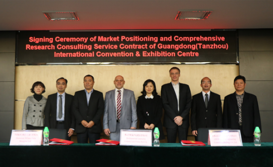 2月17日上午,广东(潭洲)国际会展中心(首期工程)定位策划及综合研究顾问服务合同签约仪式在中德工业服务区管委会成功举行。佛山市新城开发建设有限公司与汉诺威米兰展览(上海)有限公司和欧博迈亚工程咨询(北京)有限公司签订了服务合同。