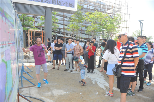 活动由畅游新城建设长征路和召开党员家属交流座谈会两部分组成。党员及家属们先行前往广东(潭洲)国际会展中心项目参观。会展中心为广东省内唯一一个省级的工业专业展馆,建设期仅8个月,堪称“顺德速度”。相关负责人介绍,为了做好会展中心项目,开发公司投入22位专业管理人员,全力推进项目建设,高峰时期现场施工工人达到3200人。项目建设克服了百年不遇的大雪,以及强台风和高温天气的不利影响,将如期于9月份完工并投入使用。党员及家属们还前往文化中心参观,相关负责人详细介绍了文化中心各项目的分布以及相关功能。坊塔项目造型如堆叠的积木,生动有趣,顶部开放式建筑产生透明效果可供瞭望,家属纷纷在这里做起“摄影师”,连声赞叹新城之美。