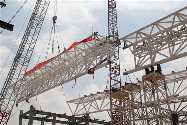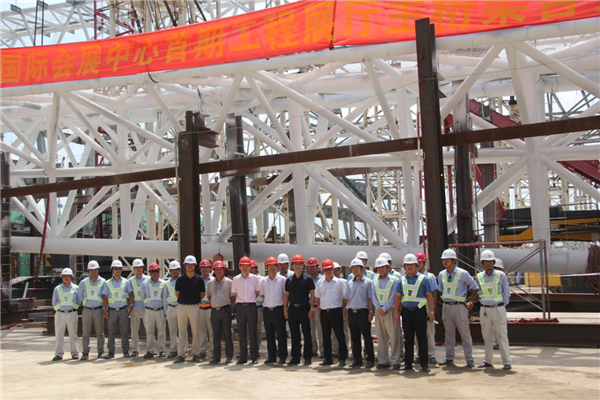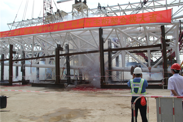 6月21日上午,时值夏至,广东(潭洲)国际会展中心3号馆最后一榀主桁架吊装完成,意味着整个会展中心的钢结构主体工程正式封顶。