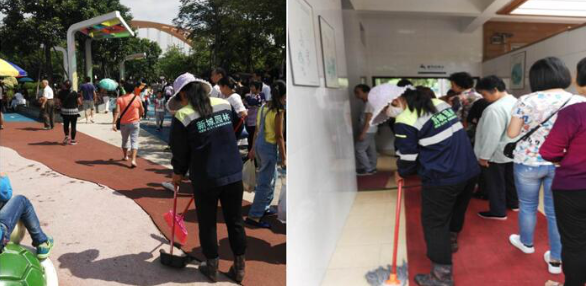 为了给市民游客提供一个整洁、优美、舒适的游园环境,绿化公司在国庆节期间对佛山新城的公园绿地环境卫生进行全方位的大保洁。其中,清洗园路约4800平方米,防治有害生物绿地10多万平方米,修剪乔木900多株次,修剪地被植物约3万多平方米,清运垃圾20多吨,以崭新靓丽的容貌喜迎四方宾客,有效应对了十一长假的人潮高峰。