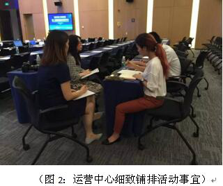 “互联网+”系列活动排期紧凑、任务重要、宾客众多,早在一个月前,运营中心已着手进行“互联网+”系列活动的前期筹备工作,包括多次与主办方对接和沟通,落实人员规模、嘉宾接待、会议议程等多项会务细节;根据会议具体需求,合理安排会议排期和布置工作人员;与各大会议的执行公司对接,掌握现场物料情况等工作。