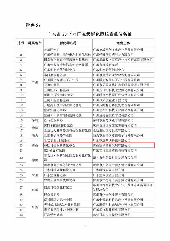 9月4日,按照国家科技企业孵化器和众创空间建设发展的总体要求,根据《广东省科学技术厅关于开展2017年度广东省众创空间试点单位 国家级孵化器培育单位认定的通知》(粤科函高字〔2017〕777号)工作安排,经各地科技主管部门推荐,省科技厅通过形式审查、专家评审、部分单位现场考察等程序,由佛山新城投资发展有限公司投资搭建的中欧科技创新转化中心(由国际创新转化生物产业孵化中心&广东智能制造示范中心共同组成)成功获得“广东省2017年国家级科技企业孵化器培育单位”认定!