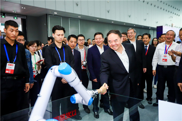博览会首日,由中国工程院院士、中国工程院原院长周济,中国贸促会党组成员、副会长张慎峰, 国家工信部信息化和软件服务业司司长谢少锋,市委书记、市人大常委会主任鲁毅,市委副书记、市长朱伟等领导一行到展馆现场巡视工作。