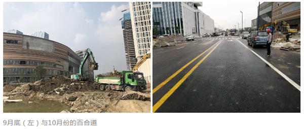 从8月份开始,百合道、永兴道、天成路、裕和路临时路等路段集中铺开建设,为了保障施工进度的有序推进,新城开发公司项目团队加班加点施工,最高峰期投入了150人在现场施工,项目人员还自愿放弃休息时间,中秋、国庆期间依然驻守现场,坚持施工。