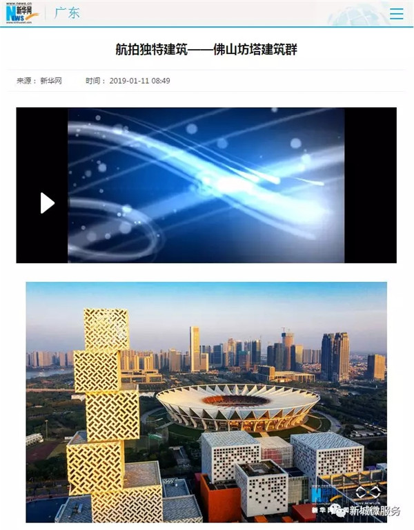 1月11日上午,新华网广东频道发布了名为《航拍独特建筑——佛山坊塔建筑群》的视频报道,从上帝视角带读者欣赏佛山新城的坊塔建筑群,其中作为佛山大剧院的所在地,于去年刚刚投入使用的坊塔项目尤为引人注目。