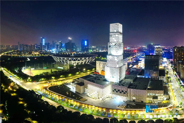 坊塔的设计融入了岭南传统雕花木窗元素,以创新的镂空设计营造出唯美的光影效果,一天的不同时间段,这栋建筑都能呈现出不一样的韵味。