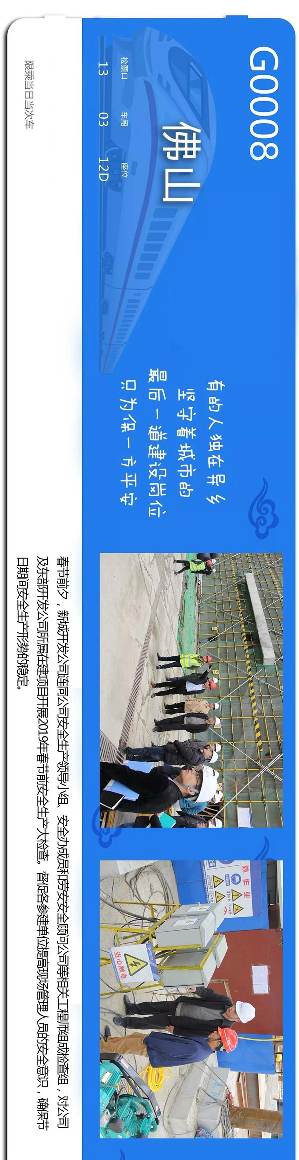 新春佳节渐进,许多人已经背起了归家的行囊,奔走在返乡的路途中。回家的路到底有多长? 一小时?一天? 无论时间多久, 总有人在为我们的归途护航。 下面,就跟着这张长长的车票 来看看新城开发人的春运“归途” 首先请你将手机向左翻转90°