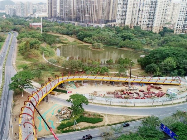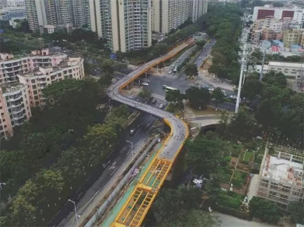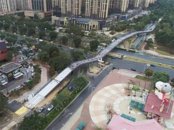 兴顺路景观天桥、祥和路景观天桥和德胜人行天桥钢箱梁吊装完成,目前进入雨棚安装阶段。