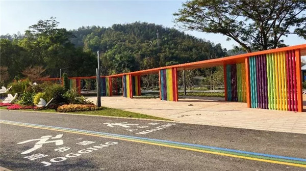 步道起点、终点设于顺峰山公园牌坊旁,用色活泼。
