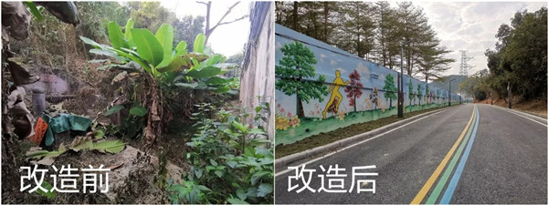 改造后的华桂园北侧围墙由涂鸦装饰,色彩鲜艳,富有活力。
