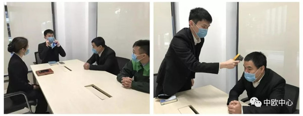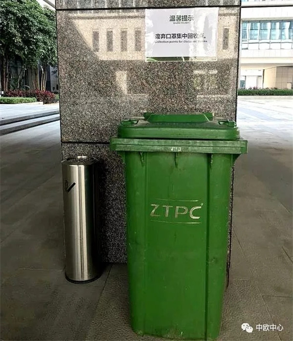 中欧中心E栋、B栋及G栋已设置“废弃口罩回收点”,引导进驻企业将废弃口罩规范、精准投放“废弃口罩回收点”内,再由环卫公司统一收集进行销毁处理。