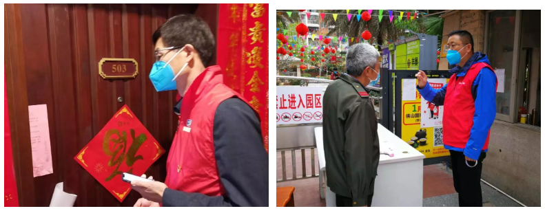 在支援乐从镇村居疫情防控工作的一线,队员们深入村居一线,在这场没有“硝烟”的疫情中勇敢战斗,部分党员志愿者更是承担了疫区回流人员的入户排查高风险的接触性任务。