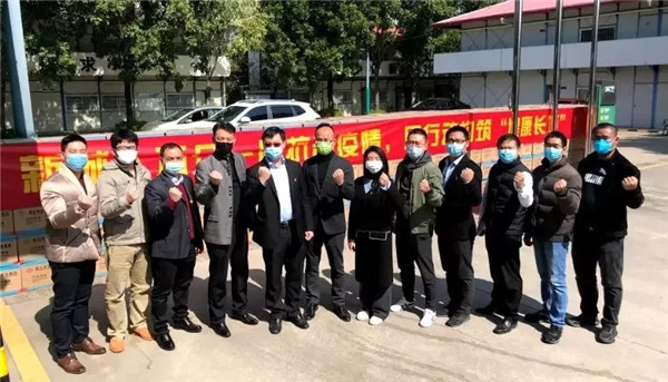 李德强(左三)为“战友”们提供防疫的应急物资保障。