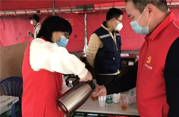 2月春寒料峭,根据防疫配方特别熬制的温热凉茶,暖了一线“战士”们的手和胃,更暖了他们的心。