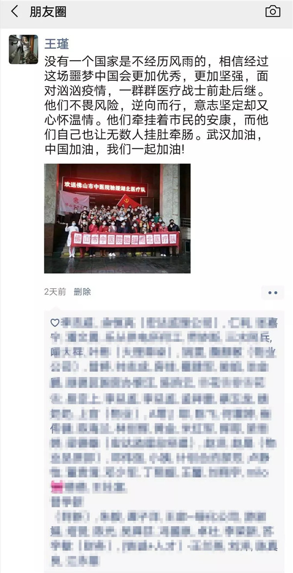 原来,王瑾的妻子冯平平是佛山市中医院骨七科的一名护师,更是佛山驰援湖北的第四批322名医护人员当中的一员。