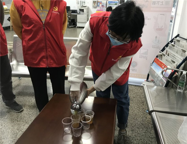 2月春寒料峭,根据防疫配方特别熬制的温热凉茶,暖了一线“战士”们的手和胃,更暖了他们的心。