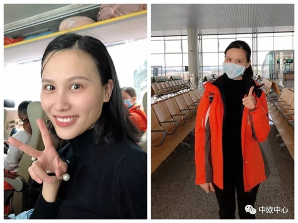 ▲王瑾妻子冯平平踏上奔赴湖北的征程。