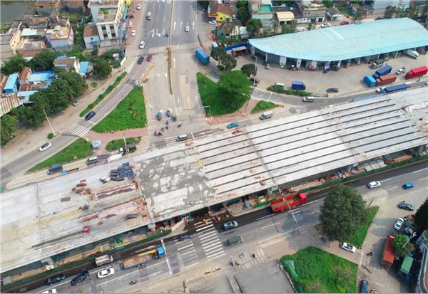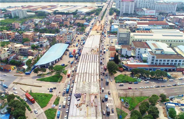 ▲桂南路口立交架梁完成。