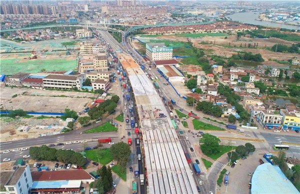 国道G105线顺德桂南路口物流城、批发市场集聚,货车及过境车流量大,上下班高峰期拥堵严重。为争分夺秒、尽快建成通车,桂南路口立交工程在做好疫情防控工作的基础上,于1月26日正式复工,复工两个多月顺利完成预制梁架任务。