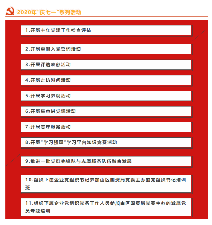 目前,新城开发公司党建工作检查评估,评选表彰、学习参观、“学习强国”学习平台知识竞赛等活动,以及党课、由国资局主办的党组织书记培训班、发展党员专题培训也正在筹备或进行中。