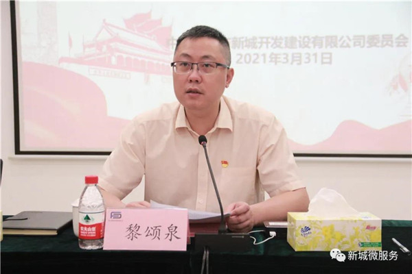 会上,新城开发公司党委副书记、副董事长、总经理彭述平传达了习近平总书记在党史学习教育动员大会上的重要讲话精神,以及省、市、区、区国资局党委关于党史学习教育的动员部署精神。