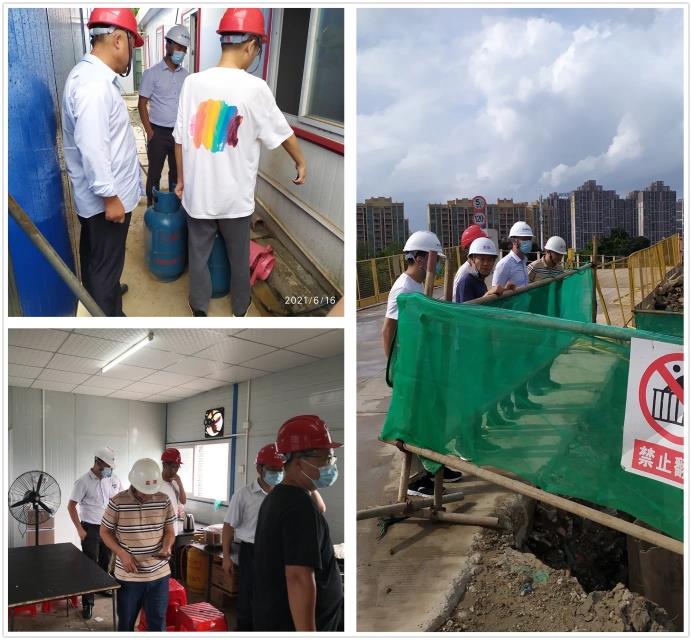 6月16日上午,公司副总经理高鹏章带队,由公司安全办成员,会同中心城区工程建设指挥部领导,分别组成检查组到南国路东延线(五沙大桥节点)项目、新逢沙大道一期项目,德胜体育中心一标、二标项目,广珠西线高速顺德收费站改造项目以及其他绿化项目开展全覆盖,拉网式带班检查。检查组重点检查各项目“六个100%”疫情防控措施落实情况、危大工程管控、基坑作业防护、施工用电等安全工作,以及对各项目食堂及宿舍进行燃气使用和宿舍用电安全进行专项检查。检查后,各检查组向参建单位项目管理人员传达了区国资局及新城集团关于当前特殊时期的安全生产工作管理要求,要求各单位务必保持高度警醒,对在建工地进行全面再排查再梳理,按照“一线三排”工作机制,有效遏制安全生产事故的发生,并要求各施工单位立即对所发现安全隐患进行整改,并由监理单位督促整改落实,限期整改,落实隐患闭环管理。
