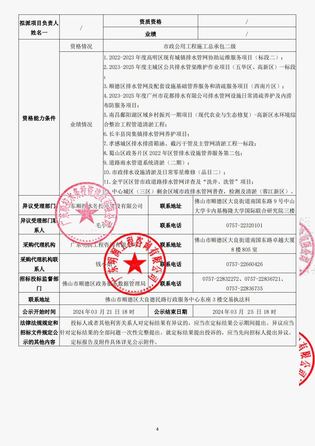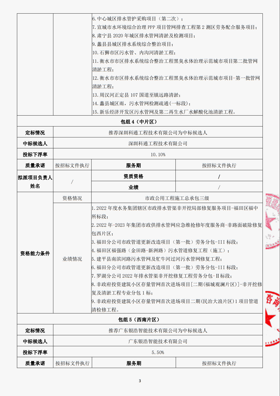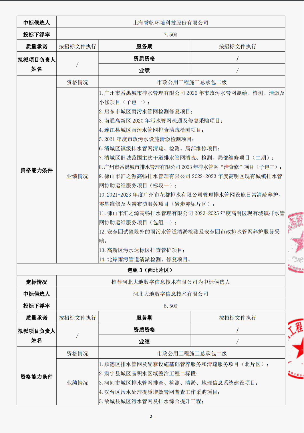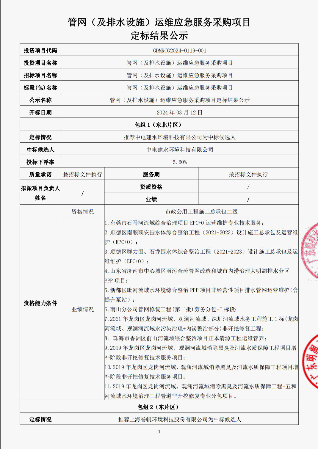 管网(及排水设施)运维应急服务采购项目定标结果公示