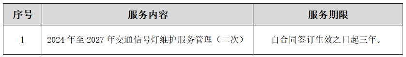 二、项目名称:2024年至2027年交通信号灯维护服务管理(二次)