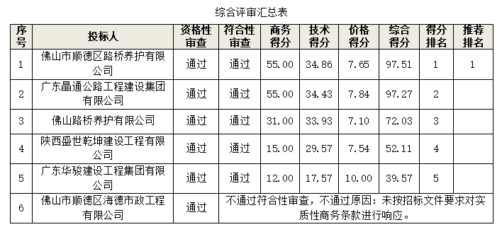 广东普信项目管理有限公司受广东顺控交通投资有限公司的委托,就2025~2027年度顺德区日常养护及小修保养(区属道路)(项目编号:PX-QYCQ-440606-2024-003)采用公开招标方式进行招标采购。评标委员会于2025年01月03日按规定程序进行了评标,现按有关规定将推荐的中标候选人公示如下: