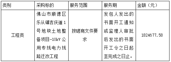 二、项目名称:佛山市顺德区乐从镇吉庆道1号地块土地整备项目-10kV公用专线电力线路迁改工程