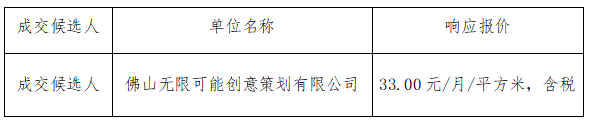 现将文化大街艺术村C区1栋物业公开招租项目(第二次)的成交候选人公示如下,公示期为3个工作日。