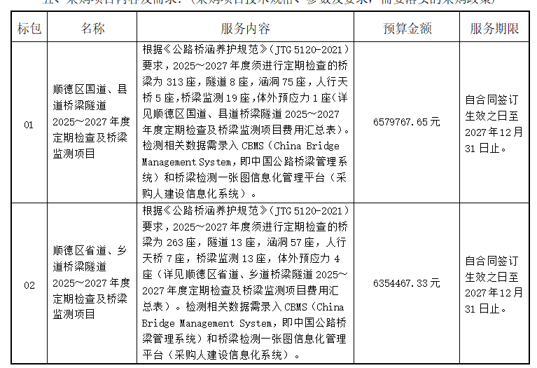 附件:顺德区2025~2027年度公路桥梁隧道定期检查及桥梁监测项目