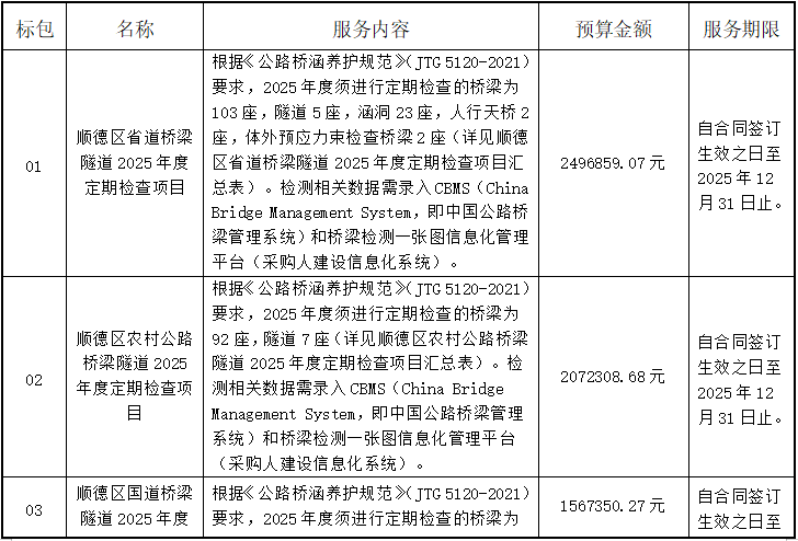 标包01(顺德区省道桥梁隧道2025年度定期检查项目):