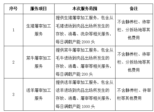 项目二:菜牛屠宰加工服务合作期限为5年。