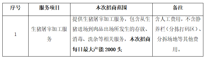 2.2 本次招商旨在导入屠宰业务,为客户提供屠宰服务,非生产线的承包经营。